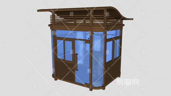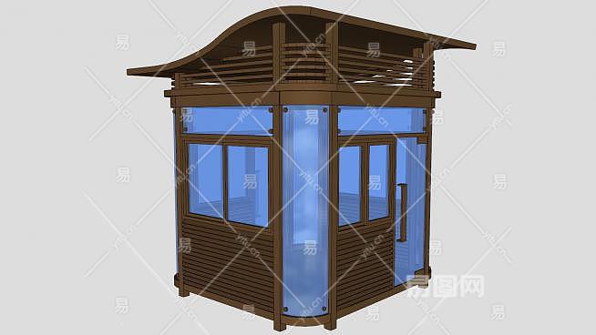 木制岗亭门卫亭SU模型下载_sketchup草图大师SKP模型
