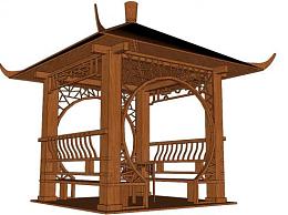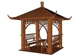四角亭子带美人靠su模型下载_sketchup草图大师SKP模型