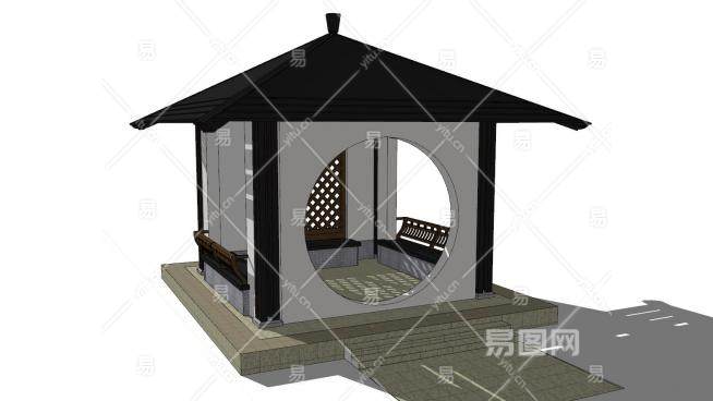 江南气息的亭子SU模型下载_sketchup草图大师SKP模型