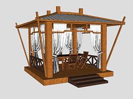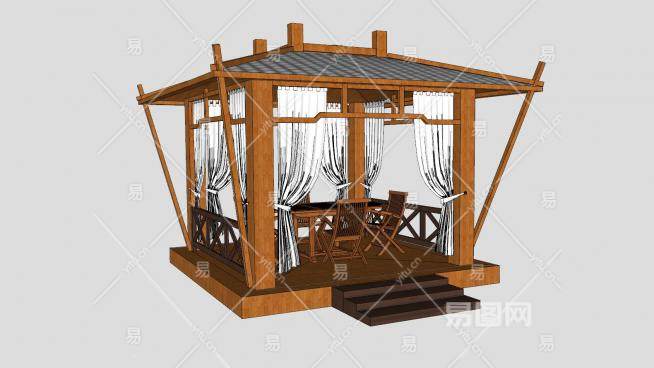 东南亚风格木质凉亭亭子SU模型下载_sketchup草图大师SKP模型