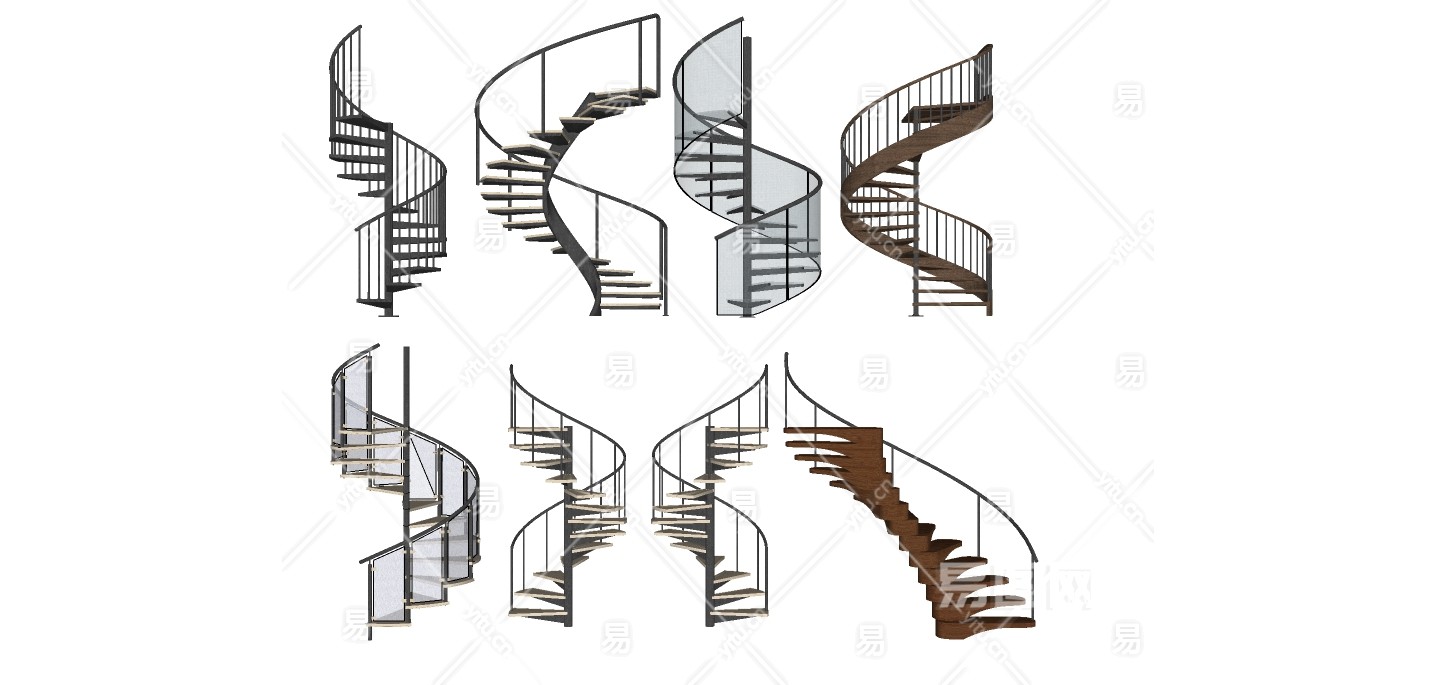 34现代简约旋转楼梯 玻璃扶手楼梯 大理石踏步旋转楼梯su草图模型下载