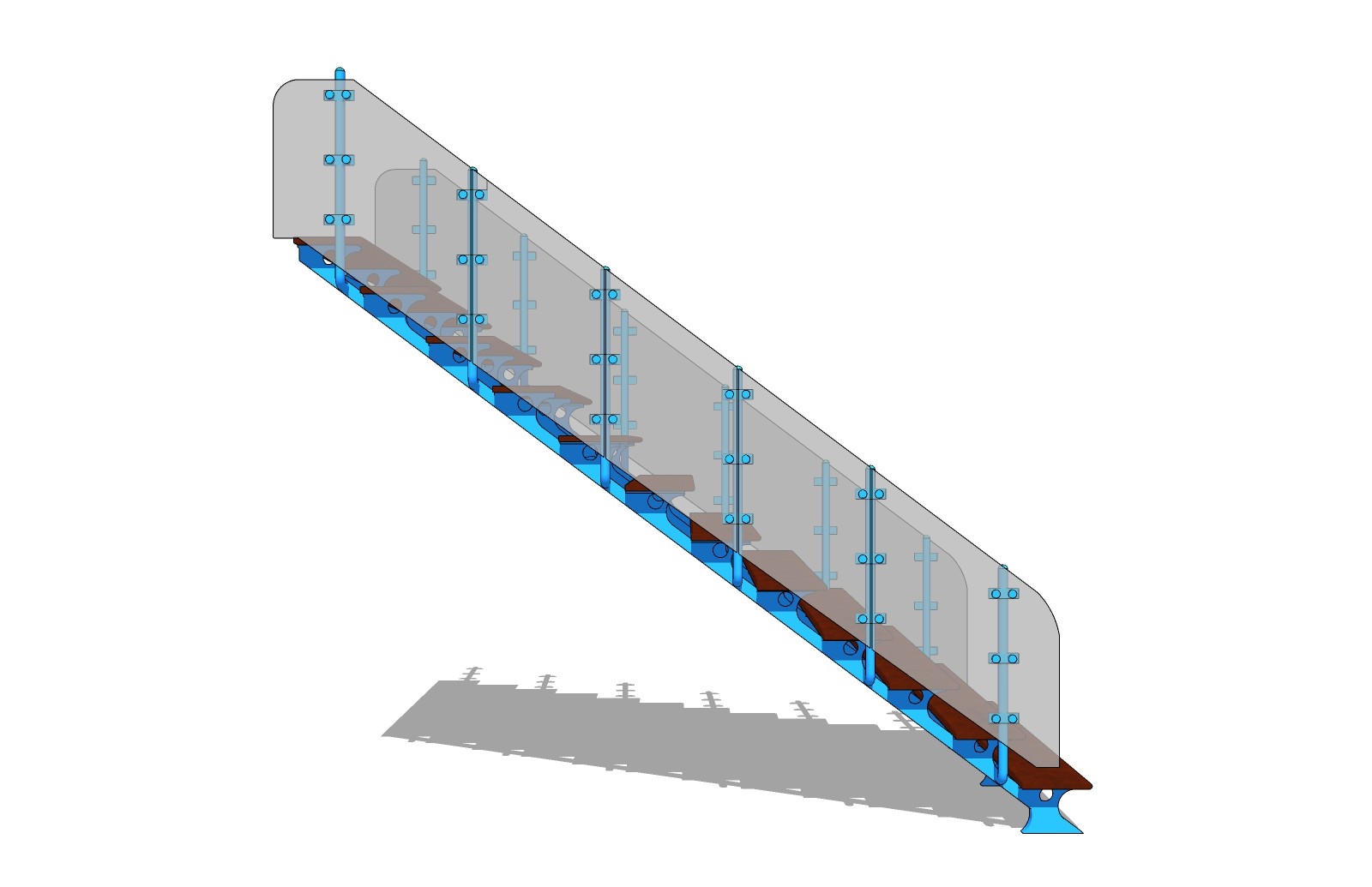 现代钢结构玻璃单跑楼梯草图大师模型,钢结构单跑楼梯sketchup模型免费下载