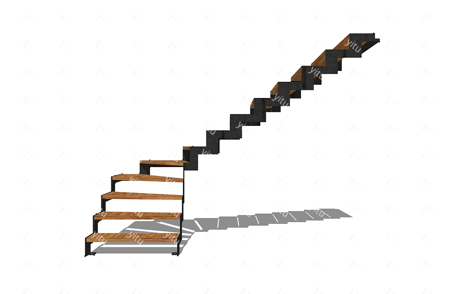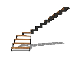 现代实木双跑折梯草图大师模型,实木双跑折梯sketchup模型免费下载