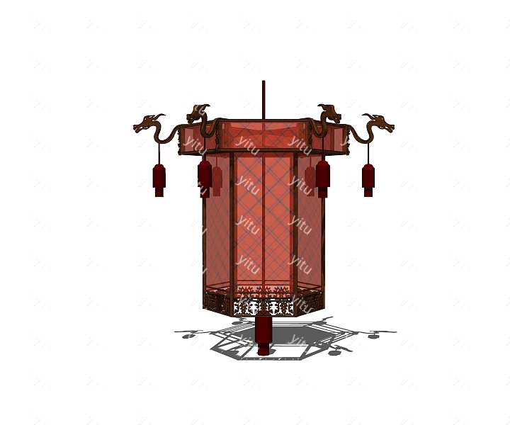 中式六方宫灯落地灯草图大师模型,落地灯su模型下载