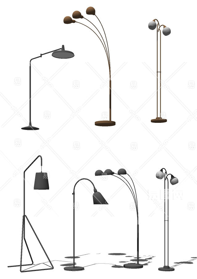 现代落地灯 装饰金属多头落地灯su草图模型下载
