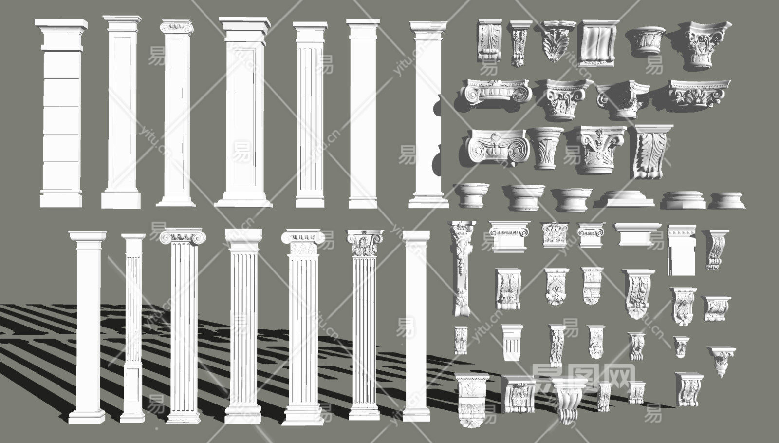 欧式罗马柱 柱头柱子 柱基 角花构件