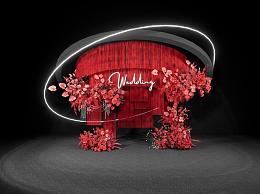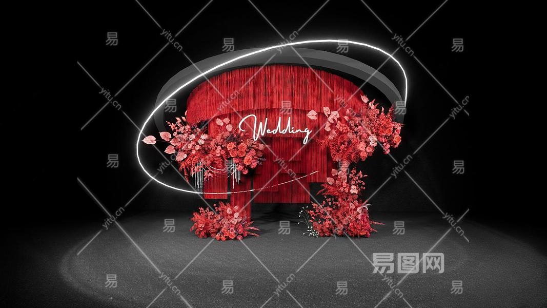 现代红色线帘婚礼美陈