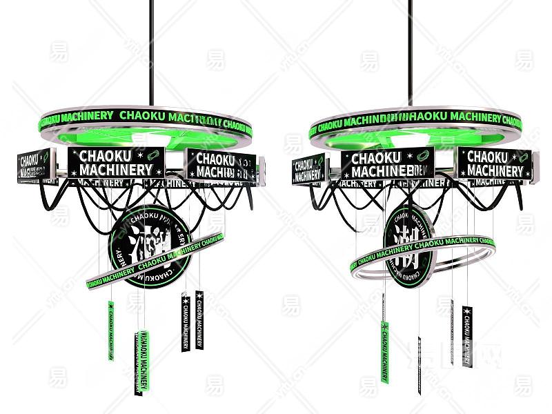 现代绿色潮流美陈 挂式美陈 商业美陈 橱窗展示 潮酷装饰 潮玩霓虹灯吊饰