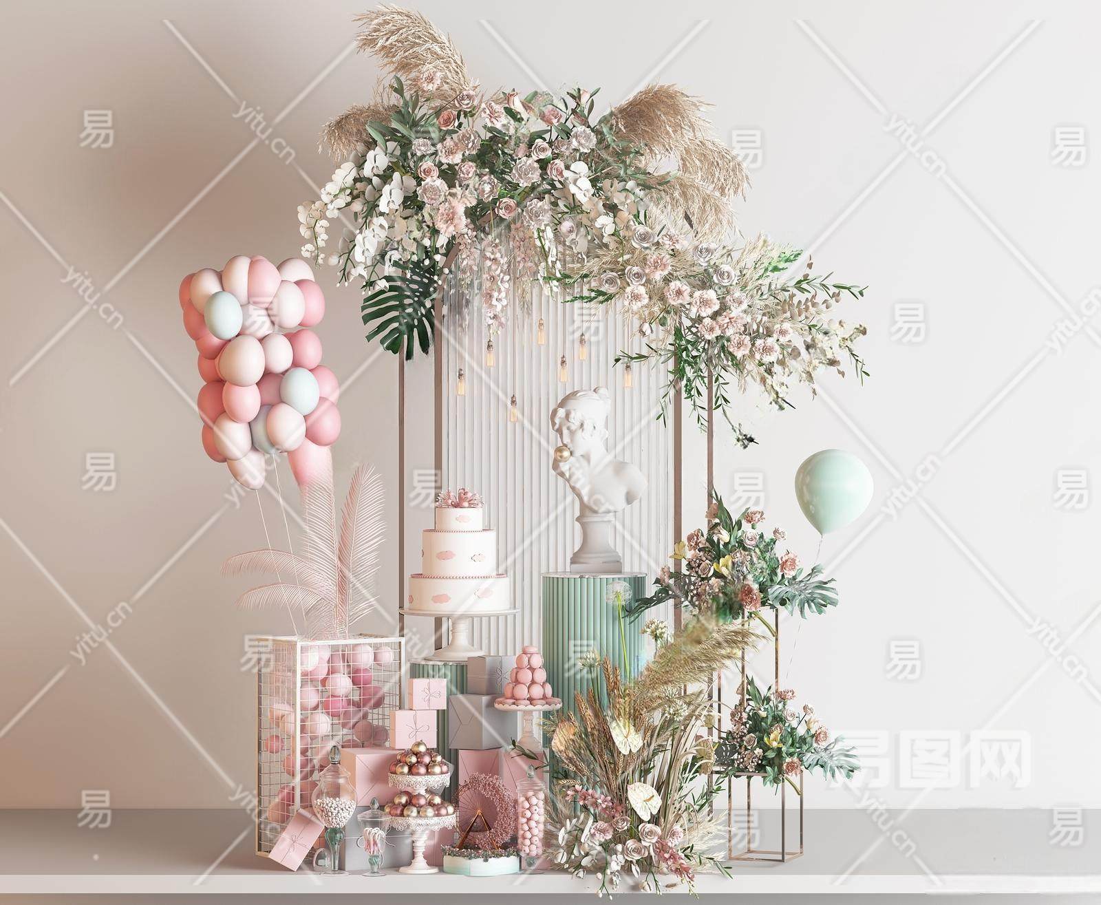 现代美陈 婚礼美陈 活动美陈 气球派对 花艺架 花艺花架 蛋糕