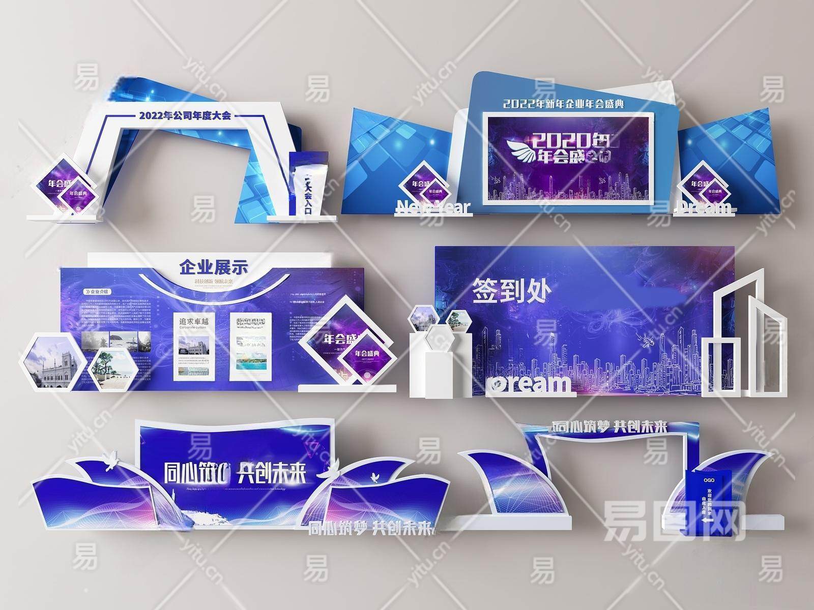 现代企业年会美陈 企业公司年会舞美 企业公司年会背景墙