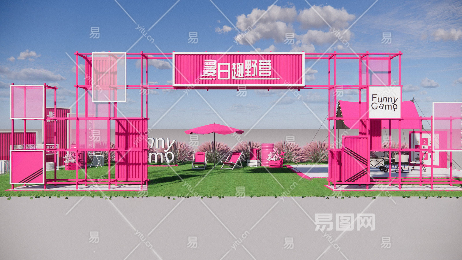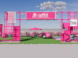 现代粉海夏日露营主题美陈 网红打卡装置