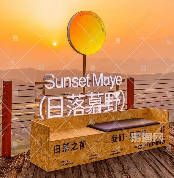 现代网红露营美陈 露营打卡点 网红落日灯 露营灯牌