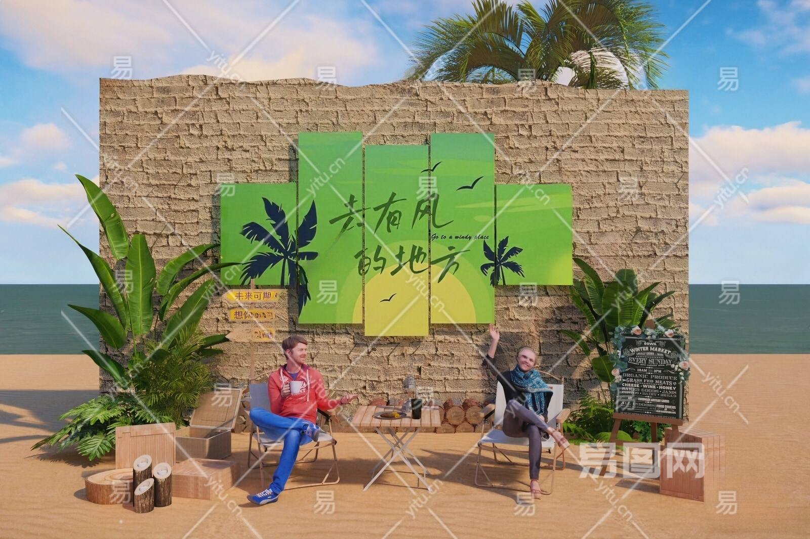 现代露营打卡点美陈 户外露营桌椅 网红氛围挂布 营地拍照点