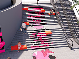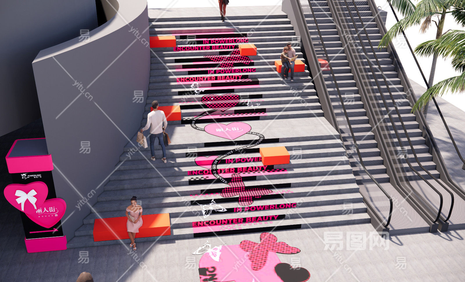 商业台阶景观 情人商业街楼梯 婚庆高差台地梯步 下沉台阶美陈 涂鸦彩绘地面铺装