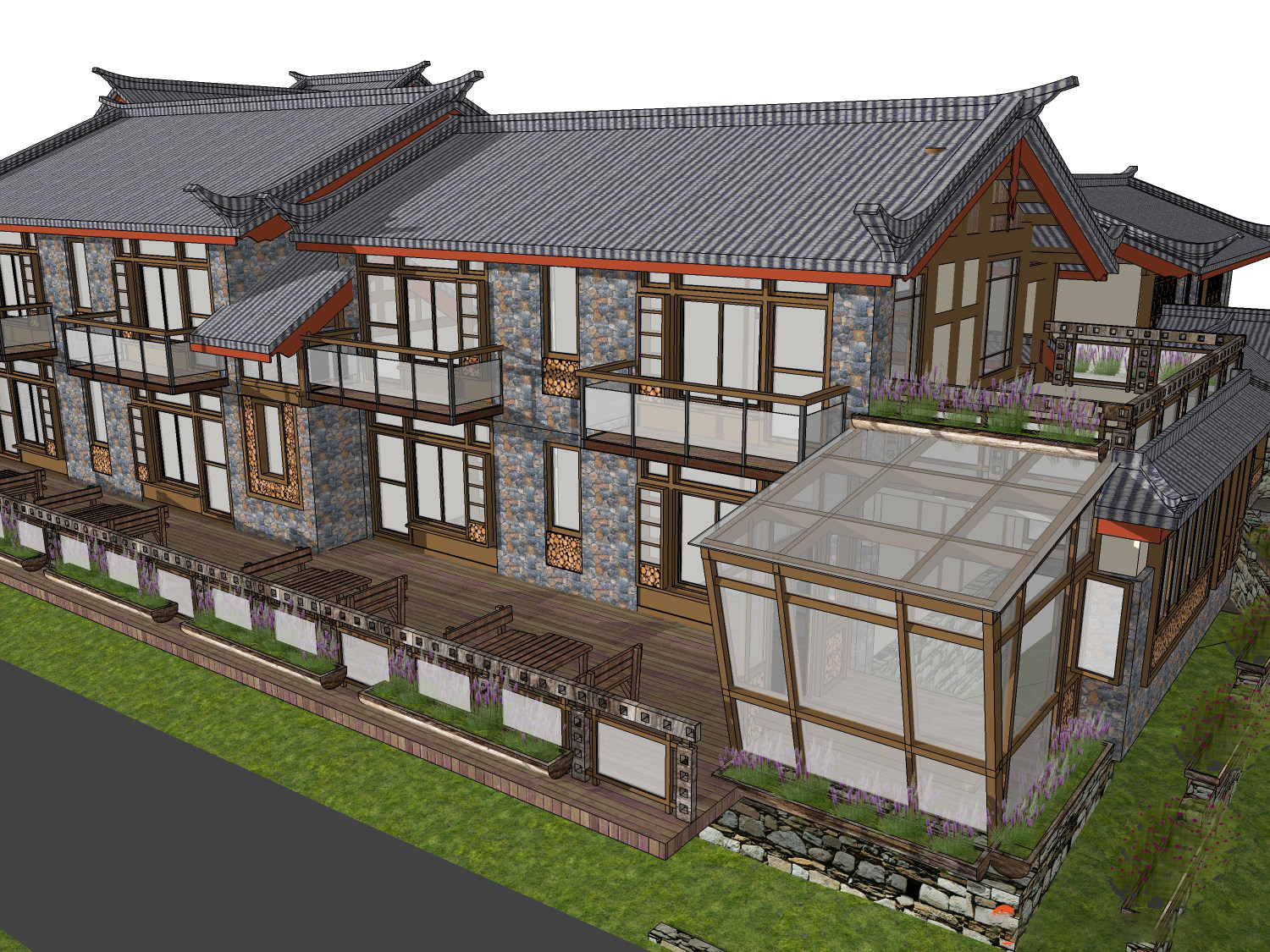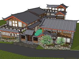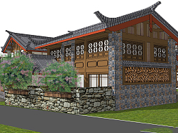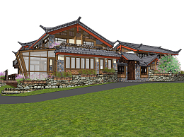中式民宿草图大师模型,民宿sketchup模型下载
