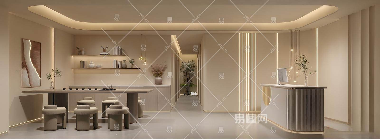 侘寂美容店 美容院休息区 景观小品 沙发茶几组合