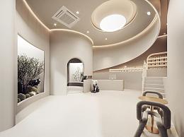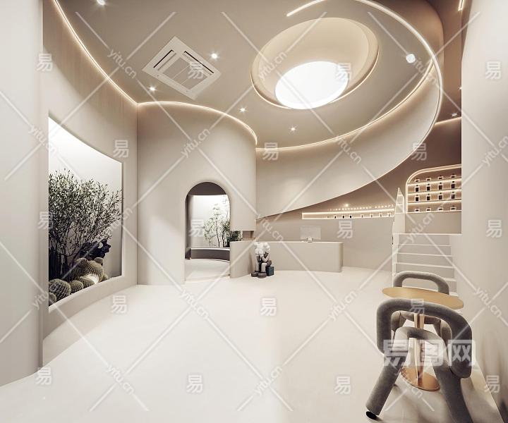 侘寂美容美甲 前台接待 美容院大堂 卡座 异形吊顶