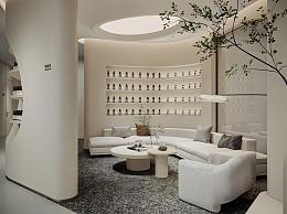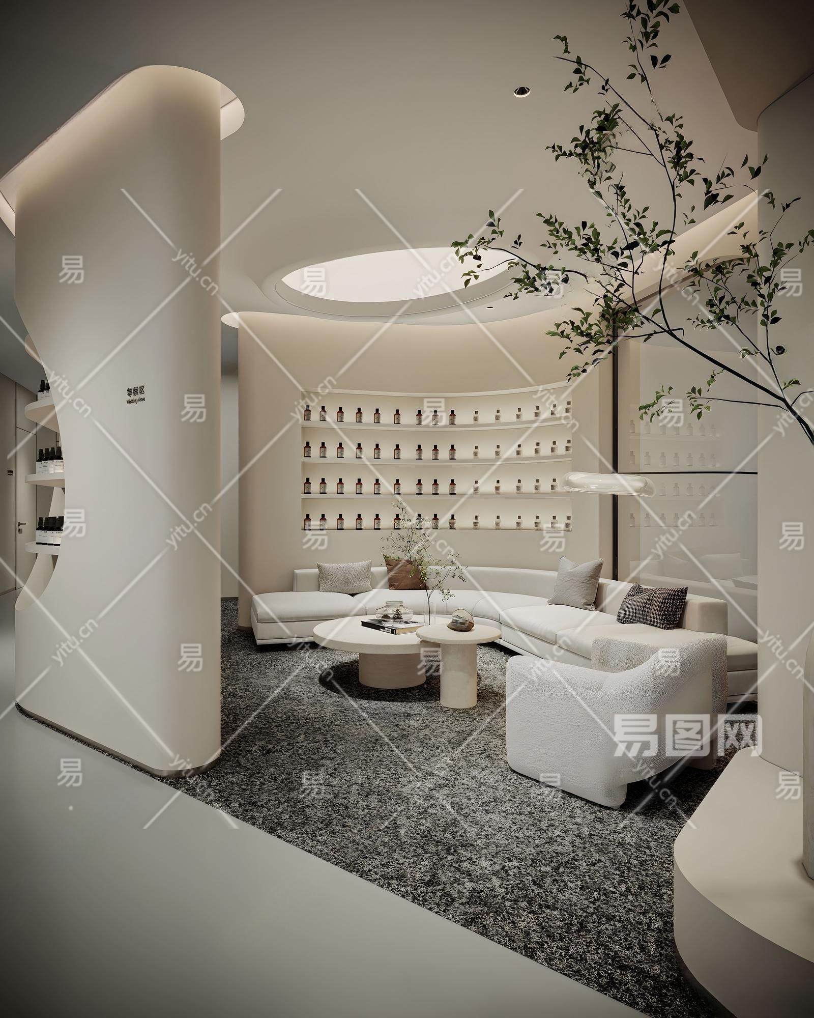 侘寂美容院 展示柜 沙发桌椅组合 地毯 顶灯
