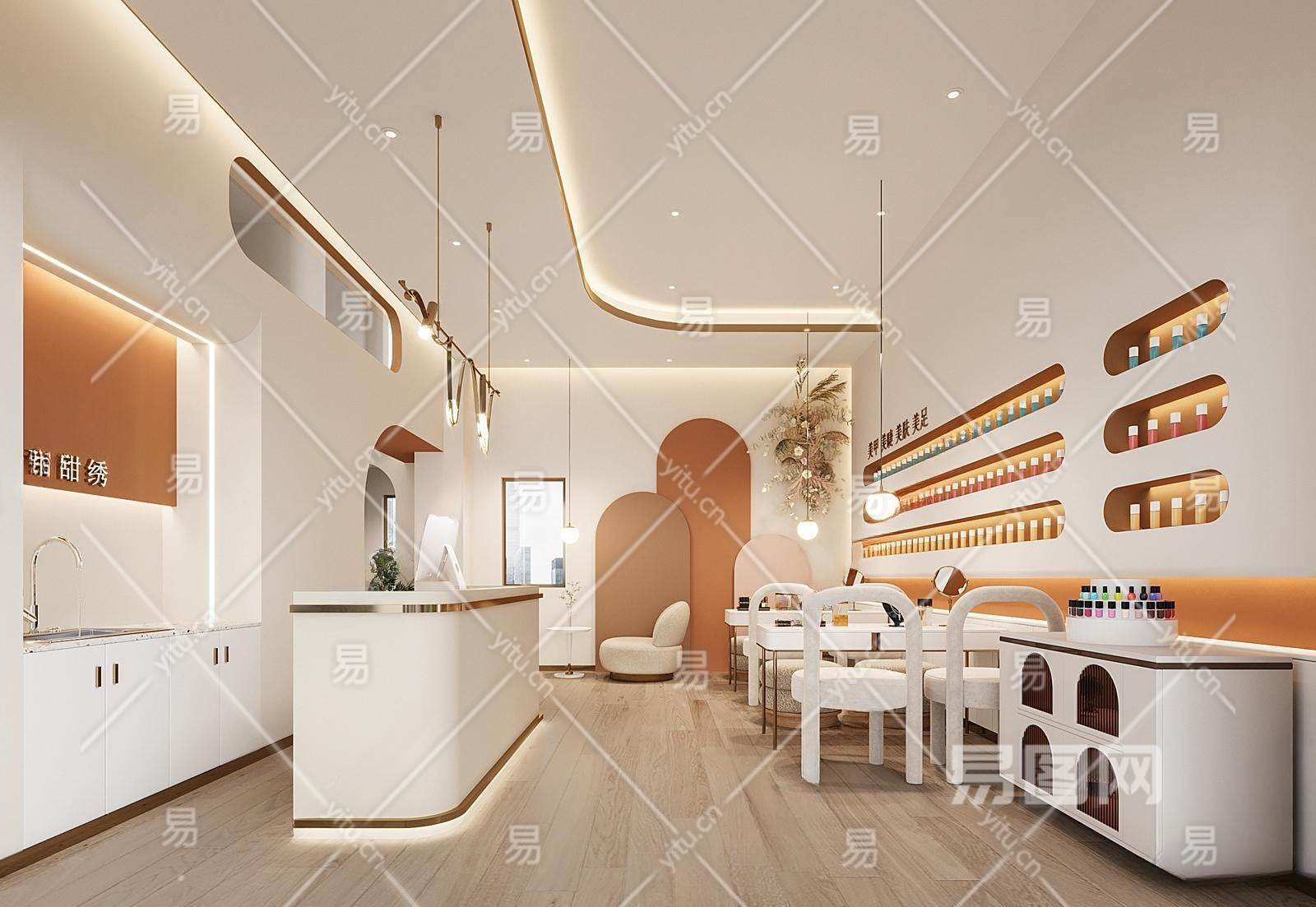侘寂美甲店 美甲桌椅 化妆品展架 化妆店 彩妆 半永久美睫