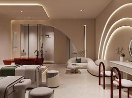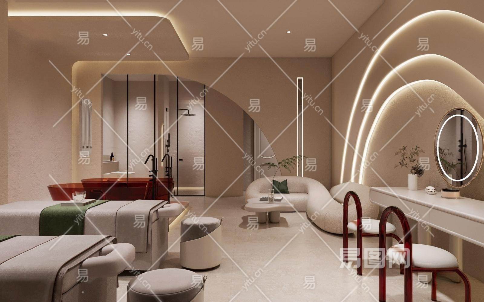 侘寂风美容院 按摩床 沙发茶几组合 浴缸
