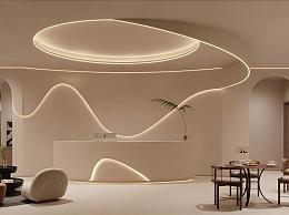 现代美容会所休息区 多人沙发 休闲椅 接待台