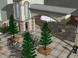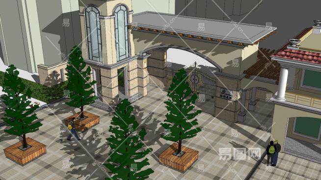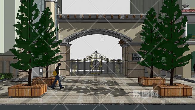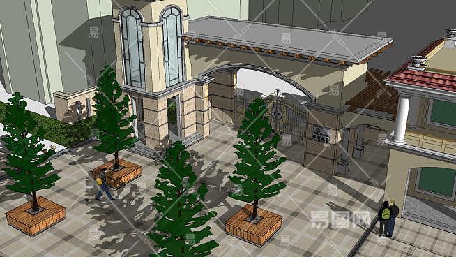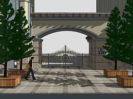 保利花园欧式小区铁艺门SU模型下载_sketchup草图大师SKP模型