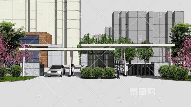 现代小区景观大门SU模型下载_sketchup草图大师SKP模型