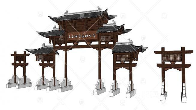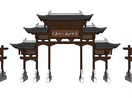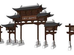 美丽乡村牌楼大门设计su模型下载_sketchup草图大师SKP模型