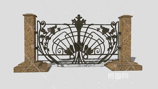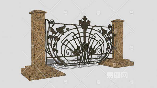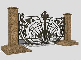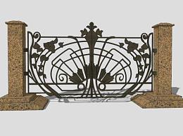 欧式创意栏杆铁艺大门SU模型下载_sketchup草图大师SKP模型