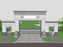 中式徽派大门石狮SU模型下载_sketchup草图大师SKP模型