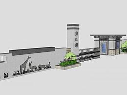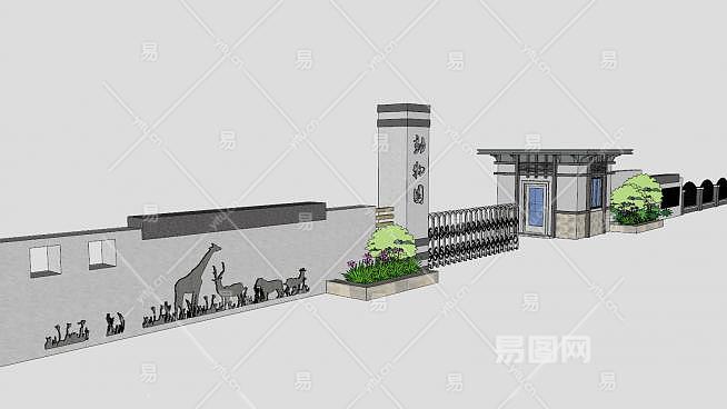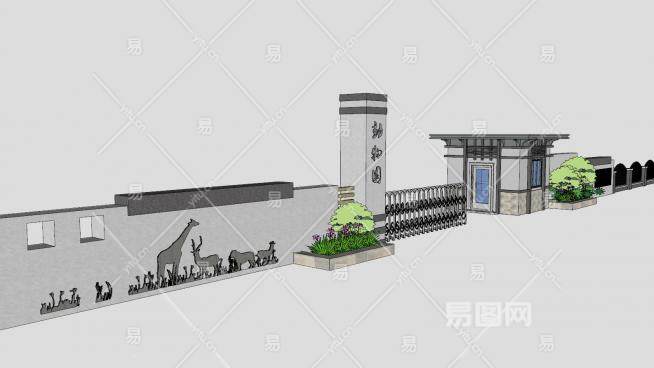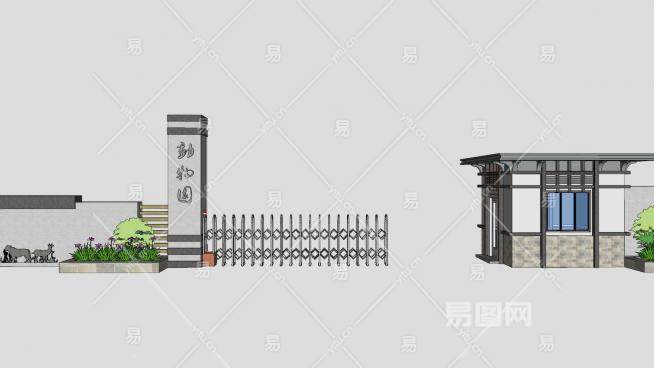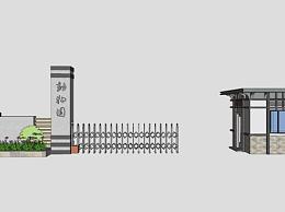门卫亭动伸缩门围墙SU模型下载_sketchup草图大师SKP模型