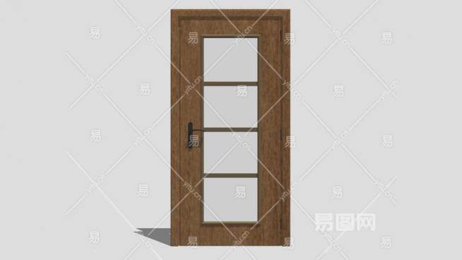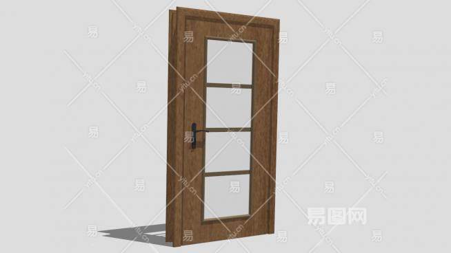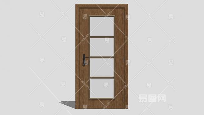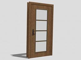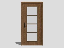 室内方格木单开门SU模型下载_sketchup草图大师SKP模型