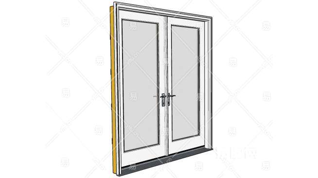 耐候木法式门木制玻璃门SU模型下载_sketchup草图大师SKP模型