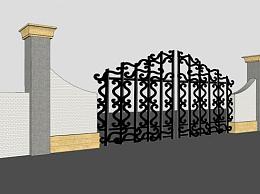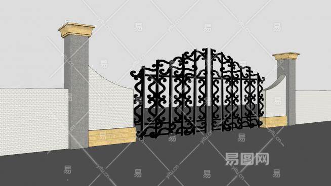 别墅围墙欧式铁艺门SU模型下载_sketchup草图大师SKP模型