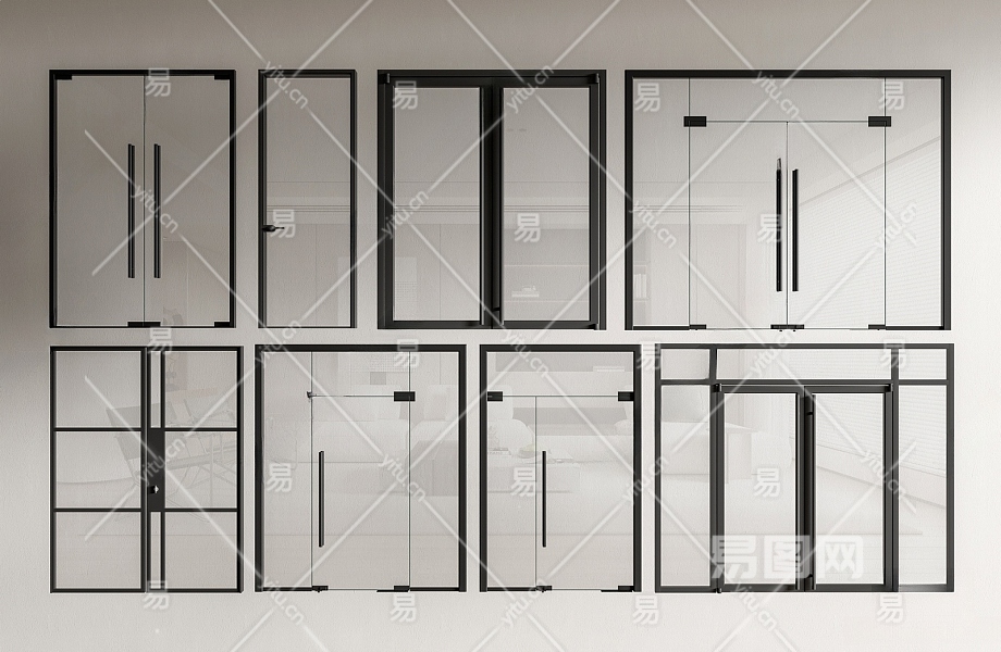 现代玻璃双开门 玻璃单开门 办公推拉门