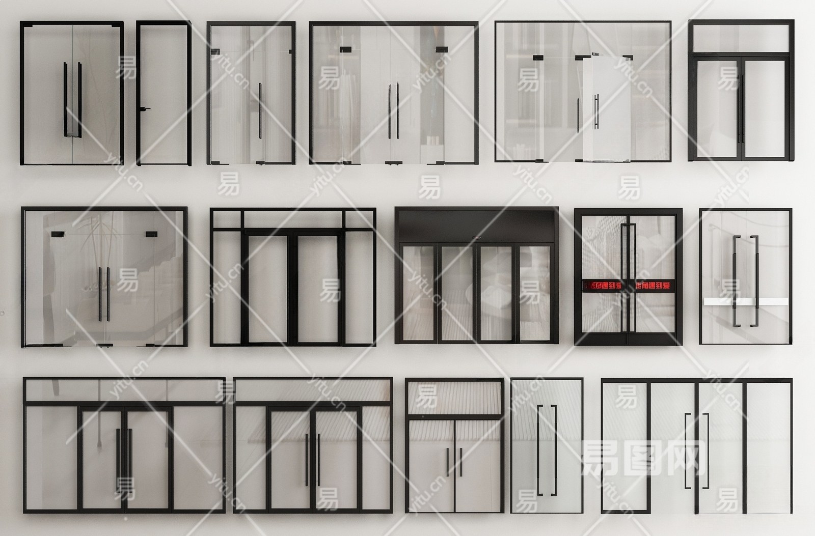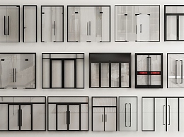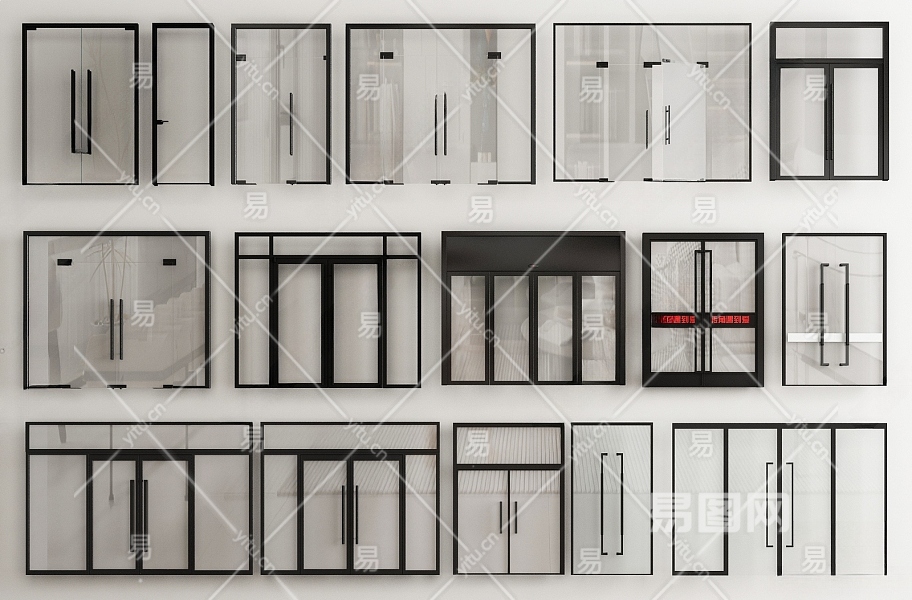 现代门组合 玻璃双开门 玻璃单开门