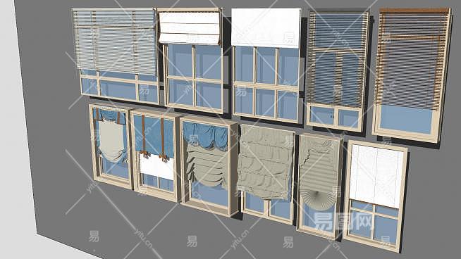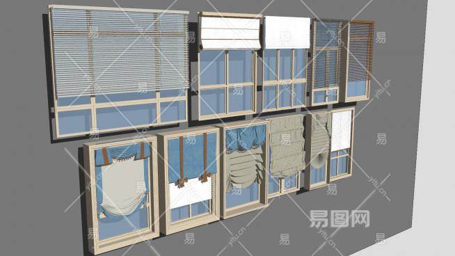 罗马帘百叶窗推窗户SU模型下载_sketchup草图大师SKP模型
