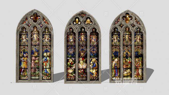 欧式窗口窗户彩色玻璃窗SU模型下载_sketchup草图大师SKP模型