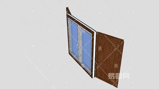 百叶木框玻璃窗SU模型下载_sketchup草图大师SKP模型