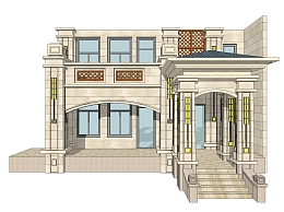 • 现代美式风格别墅草图大师模型,别墅SU模型下载