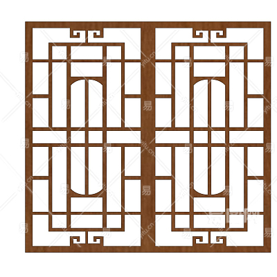 中式实木窗格su模型