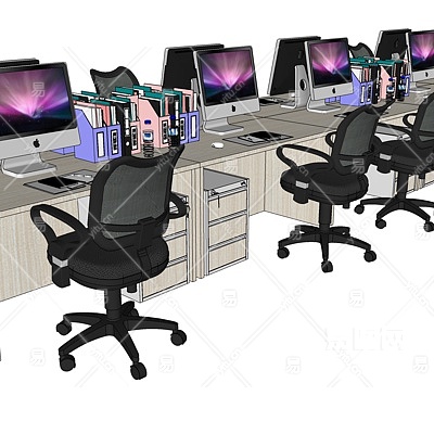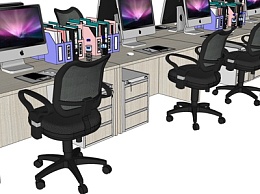 现代卡位办公桌椅su模型