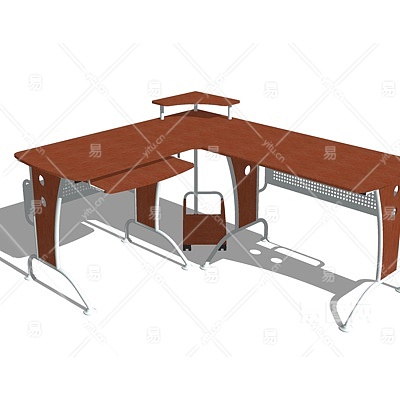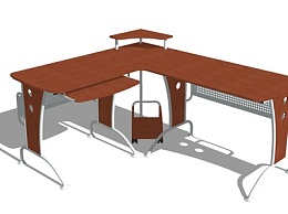 现代卡位办公桌su模型