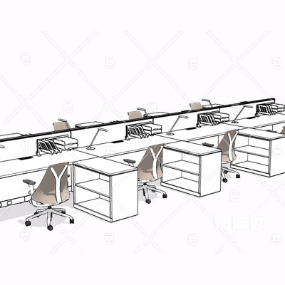 现代卡位办公桌椅su模型