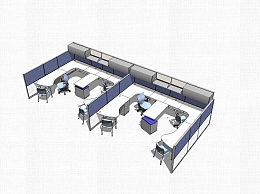 现代屏风办工桌草图大师模型,办工桌skp模型,办工桌su素材下载