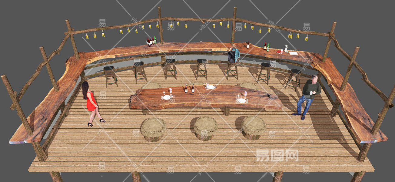 当前的位置:首页 > sketchup > sketchup模型 > 商业空间 > 酒吧 > 田园户外酒吧吧台 原木茶几坐凳 木桩吊灯