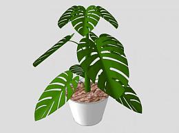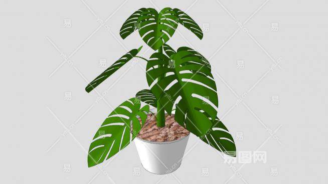 龟背竹植物盆栽SU模型下载_sketchup草图大师SKP模型