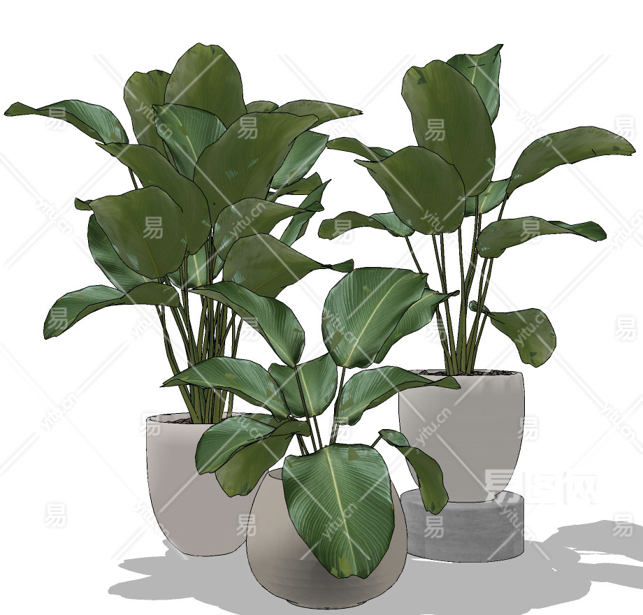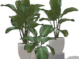 现代绿植盆栽,芭蕉叶su草图模型下载