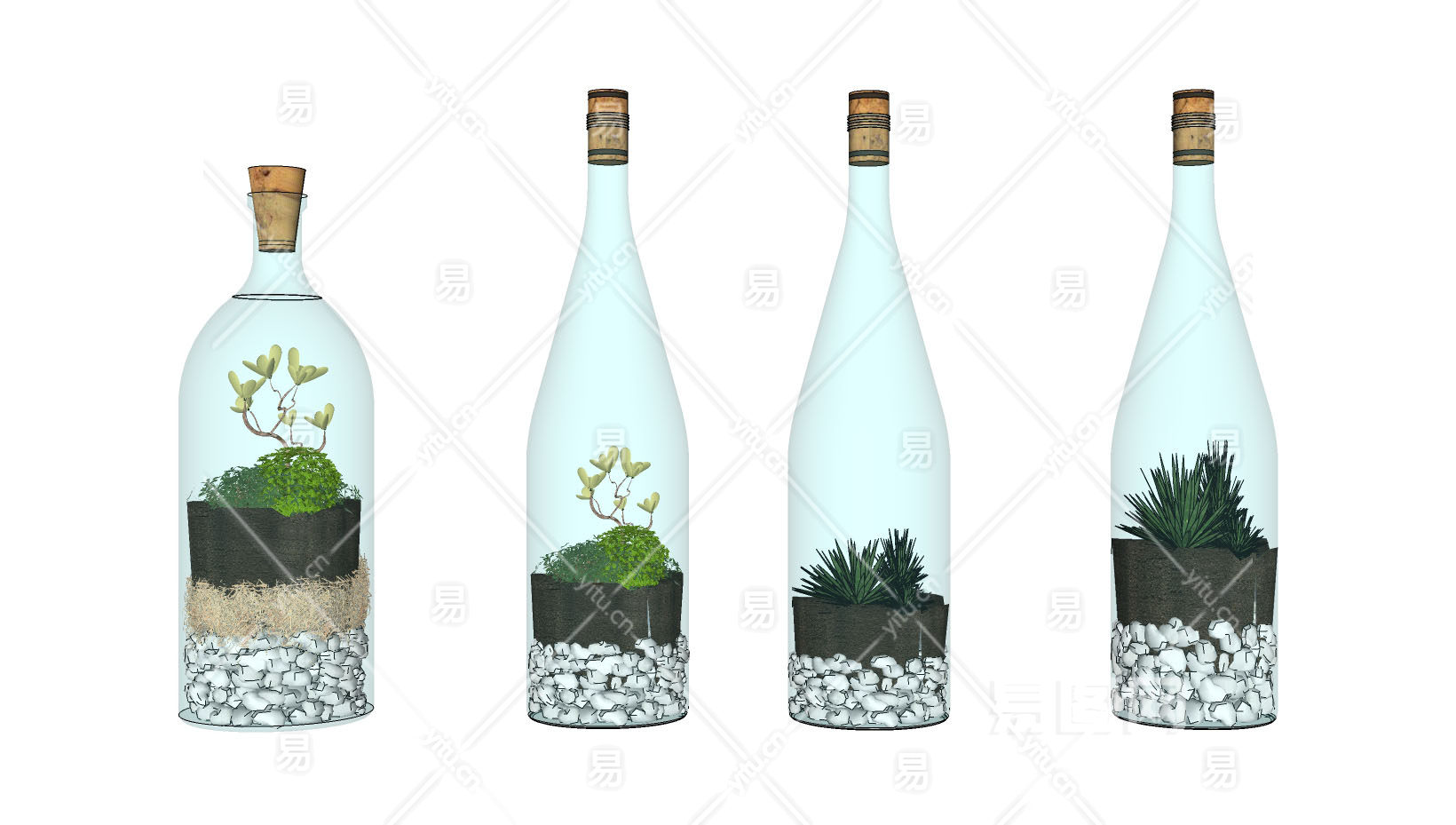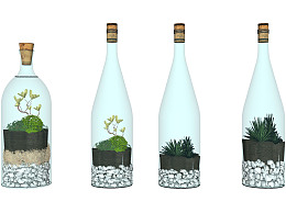 盆栽盆景摆件 瓶子摆件su草图模型下载