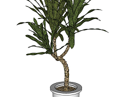 香龙血树盆栽sketchup模型,手绘绿植草图大师模型下载